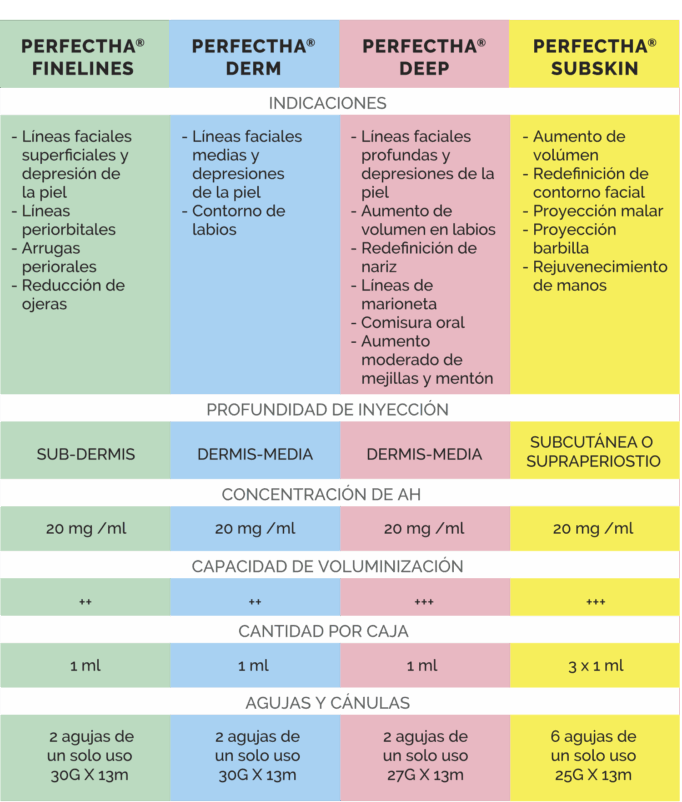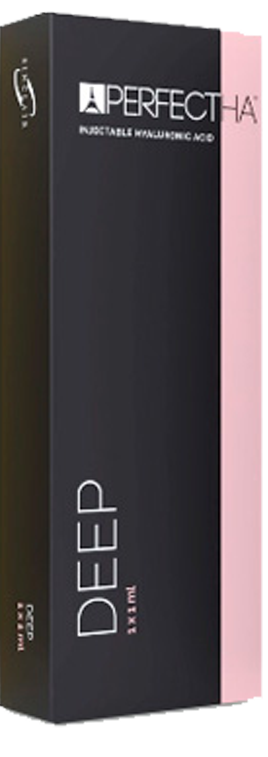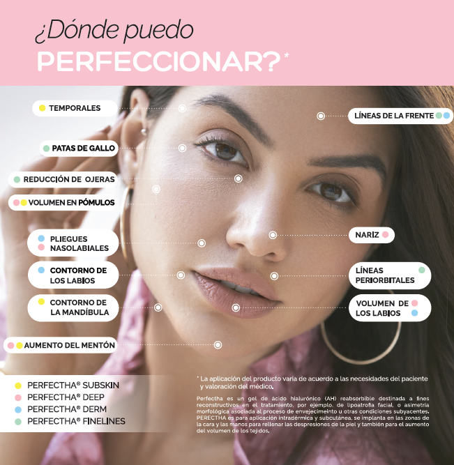 PERFECTHA® es una gama de rellenos de AH hechos a la medida «Fabricados en Francia» diseñado para la corrección de arrugas, definición del contorno facial y restauración del volumen, ofreciendo resultados inmediatos de apariencia natural y duraderos.¹